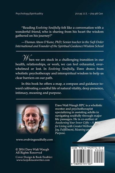 In Evolving Soulfully, Dave Wali Waugh invites us on an adventure of healing and awakening. He draws from wholistic psychotherapy and interspiritual wisdom to illuminate the path of those who are yearning for a more fulfilling life or those who feel stuck in a challenging transition in their health, relationships or work. He offers a wholistic map, compass and guidance for navigating through their soulful passage to cultivating natural vitality, deep presence, intimacy, meaning and purpose.