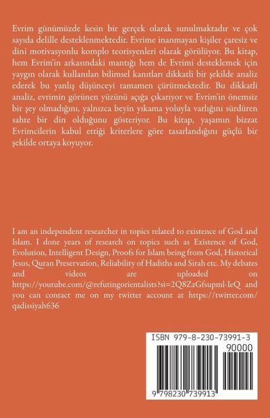 Evrim günümüzde kesin bir gerçek olarak sunulmaktad¿r ve çok say¿da delille desteklenmektedir. Evrime inanmayan ki¿iler çaresiz ve dini motivasyonlu komplo teorisyenleri olarak görülüyor. Bu kitap, hem Evrim'in arkas¿ndaki mant¿¿¿ hem de Evrimi desteklemek için yayg¿n olarak kullan¿lan bilimsel kan¿tlar¿ dikkatli bir ¿ekilde analiz ederek bu yanl¿¿ dü¿ünceyi tamamen çürütmektedir. Bu dikkatli analiz, evrimin görünen yüzünü aç¿¿a ç¿kar¿yor ve Evrim'in önemsiz bir ¿ey olmad¿¿¿n¿, yaln¿zca beyin y¿kama yoluyla varl¿¿¿n¿ sürdüren sahte bir din oldu¿unu gösteriyor. Bu kitap, yäam¿n bizzat Evrimcilerin kabul etti¿i kriterlere göre tasarland¿¿¿n¿ güçlü bir ¿ekilde ortaya koyuyor.