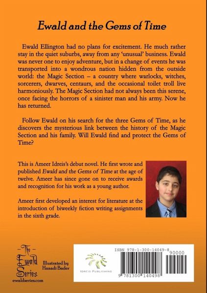 Ewald Ellington had no plans for excitement. He much rather stay in the quiet suburbs, away from any 'unusual' business. Ewald was never one to enjoy adventure, but in a change of events he was transported into a wondrous nation hidden from the outside world: the Magic Section - a country where warlocks, witches, sorcerers, dwarves, centaurs, and the occasional toilet troll live harmoniously. The Magic Section had not always been this serene, once facing the horrors of a sinister man and his army. Now he has returned. Follow Ewald on his search for the three Gems of Time, as he discovers the mysterious link between the history of the Magic Section and his family. Will Ewald find and protect the Gems of Time?