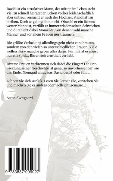 David ist ein attraktiver Mann,der mitten im Leben steht. Viel zu schnell heiratet er. Schon vorher leidenschaftlich aber untreu,versucht er auch der Hochzeit standhaft zu bleiben. Doch es gelingt ihm nicht.Obwohl ein liebenswerter Mann,verfällt er immer wieder seinen Schwächen und durchlebt dabei Momente, von denen wohl manche Männer und vor allem Frauen nur träumen. Die größte Verlockung allerdings geht nicht von ihm aus, sondern von den vielen, so unterschiedlichen Frauen.Viele wollen ihn - manche geben alles dafür. Für ihn ist es meist nur ein Spiel ... Bis er sich ernsthaft verliebt. Diverse Frauen verbrennen sich dabei die Finger!Die Entwicklung seines dieser Geschichte ist genauso unvorhersehbar wie das Ende. Niemand ahnt, was David denkt oder fühlt.Lehnen Sie sich zurück. Lesen Sie,lernen Sie, verstehen Sie und machen Sie es anders oder vielleicht genauso ...