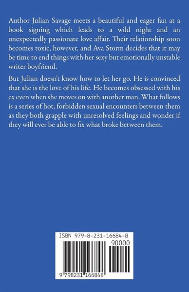 Author Julian Savage meets a beautiful and eager fan at a book signing which leads to a wild night and an unexpectedly passionate love affair. Their relationship soon becomes toxic, however, and Ava Storm decides that it may be time to end things with her sexy but emotionally unstable writer boyfriend. But Julian doesn't know how to let her go. He is convinced that she is the love of his life. He becomes obsessed with his ex even when she moves on with another man. What follows is a series of hot, forbidden sexual encounters between them as they both grapple with unresolved feelings and wonder if they will ever be able to fix what broke between them.
