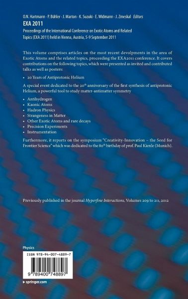 Now the research in exotic atoms has a remarkable history of more than 50 years. Enormous success in the understanding of fundamental interactions and symmetries resulted from the research on these tiny objects at the femtoscale. This volume contains research papers on recent achievements and future opportunities of this highly interdisciplinary field of atomic, nuclear, and particle physics. The Proceedings are structured according to the conference session topics: Kaon-Nucleus and Kaon-Nucleon Interactions, Antihydrogen and Fundamental Symmetries, Hadronphysics with Antiprotons, Future Facilities and Instrumentation, Low energy QCD.