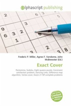 Exact cover. Pentomino, Sudoku, Eight queens puzzle, Constraint satisfaction problem, Dancing Links, Difference map algorithm, Vertex cover, Karp's 21 NP-complete problems, Knuth's Algorithm X, List of NP-complete problems