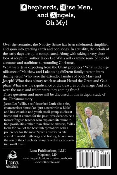 Shepherds, Wise Men, and Angels. Over the centuries, the Nativity Scene has been celebrated, simplified, and spun into greeting cards and pop songs. In actuality, the details of the early days are quite complicated. Along with taking a very close look at scripture, author Jason Lee Willis will examine some of the old accounts and traditions surrounding Christmas. What were Jews expecting from the Christ prophecy? What is the significance of Matthew and Luke using different family trees in introducing Jesus? Who were the extended families of both Mary and Joseph? What does history teach us about Herod the Great and Caiaphas? What was the significance of the treasures of the magi? And who were the magi and where were they coming from? These questions and more will be discussed in this in depth study of the Christmas story.
