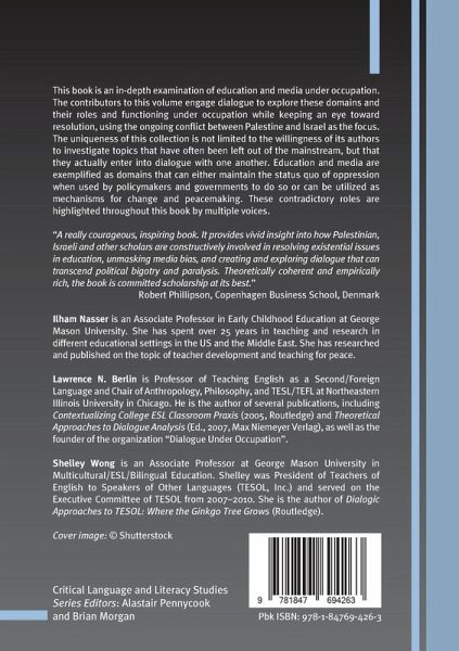 This book address media and education in the context of Palestine and Israel. They provide insights and provocative analysis of the status quo in education, including language teaching, educational policy and research, media representations and reporting in Middle East and U.S. and different models of dialogue between Palestinians and Israelis.