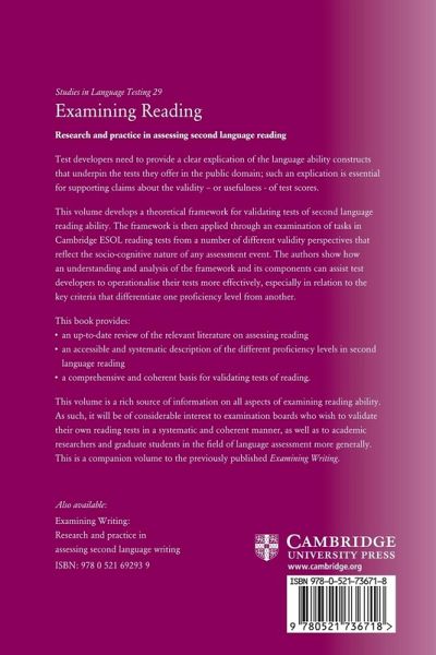 The book examines the nature of second language reading proficiency and how it can be assessed.