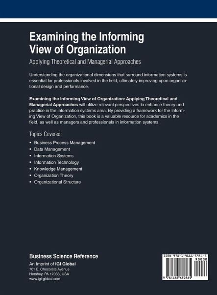 Understanding the organizational dimensions that surround information systems is essential for professionals involved in the field, ultimately improving upon organizational design and performance. Examining the Informing View of Organization: Applying Theoretical and Managerial Approaches will utilize relevant perspectives to enhance theory and practice in the information systems area. By providing a framework for the Informing View of Organization, this book is a valuable resource for academics in the field, as well as managers and professionals in information systems.