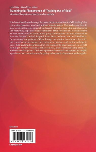 This book identifies and surveys the major themes around 'out-of-field teaching', that is, teaching subjects or year levels without a specialization. This has been an issue in many countries for some time, yet until recently there has been little formal research and poor policy responses to related problems. This book arises out of collaborations between members of an international group of researchers and practitioners from Australia, Germany, Ireland, England, South Africa, Indonesia and the United States. Cross-national comparisons of ideas through case studies, descriptions of practice and research data interrogates the experiences, practices, and contexts relating to out-of-field teaching. In particular, the book considers the phenomenon of out-of-field teaching in relation to national policy contexts, local school leadership practices, professional development. The book represents an essential contribution on a highly topical issue that has implications for quality and equitableeducation around the globe.