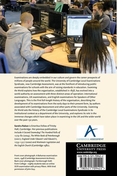 Examinations are deeply embedded in our culture and govern the career prospects of millions of people around the world. The University of Cambridge Local Examinations Syndicate, now Cambridge Assessment, was at the forefront of introducing public examinations for schools with the aim of raising standards in education. Examining the World explains how the organisation, established in 1858, has evolved into a world authority on assessment with three areas of operation: international examinations, home examinations, and English examinations for Speakers of Other Languages. This is the first full-length history of the organisation, describing the development of its examinations from the early days to their present form, by authors associated with Cambridge Assessment and other parts of the University. It sets the history of Cambridge examinations in their context as a department of the University and the immense changes which have taken place in examining in the UK and the wider world.