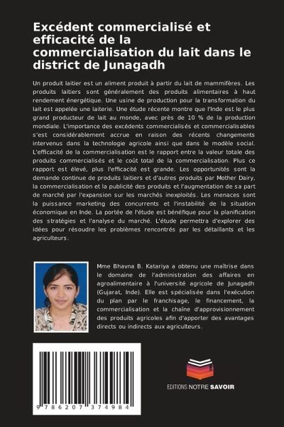 Un produit laitier est un aliment produit à partir du lait de mammifères. Les produits laitiers sont généralement des produits alimentaires à haut rendement énergétique. Une usine de production pour la transformation du lait est appelée une laiterie. Une étude récente montre que l'Inde est le plus grand producteur de lait au monde, avec près de 10 % de la production mondiale. L'importance des excédents commercialisés et commercialisables s'est considérablement accrue en raison des récents changements intervenus dans la technologie agricole ainsi que dans le modèle social. L'efficacité de la commercialisation est le rapport entre la valeur totale des produits commercialisés et le coût total de la commercialisation. Plus ce rapport est élevé, plus l'efficacité est grande. Les opportunités sont la demande continue de produits laitiers et d'autres produits par Mother Dairy, la commercialisation et la publicité des produits et l'augmentation de sa part de marché par l'expansion sur les marchés inexploités. Les menaces sont la puissance marketing des concurrents et l'instabilité de la situation économique en Inde. La portée de l'étude est bénéfique pour la planification des stratégies et l'analyse du marché. L'étude permettra d'explorer des idées pour résoudre les problèmes rencontrés par les détaillants et les agriculteurs.