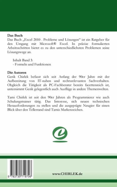 Das Buch "Excel 2010. Probleme und Lösungen" ist ein Ratgeber für den Umgang mit Microsoft® Excel. In präzise formulierten Arbeitsschritten bietet es zu den unterschiedlichsten Problemen seine Lösungswege an.Inhalt Band 3: Formeln und Funktionen