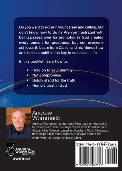 Do you want to excel in your career and calling, but don't know how to do it? Are you frustrated with being passed over for promotions? God created every person for greatness, but not everyone achieves it. Learn from Daniel and his friends how an excellent spirit is the key to success in life. In this booklet, learn how to: Hold on to your identity Not compromise Boldly stand for the truth Humbly trust in God