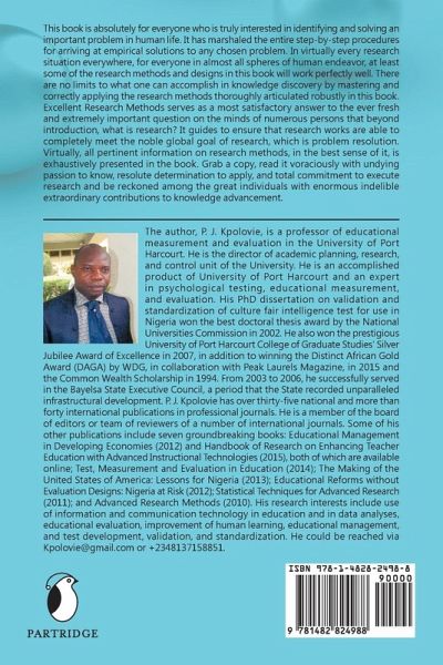 This book is absolutely for everyone who is truly interested in identifying and solving an important problem in human life. It has marshaled the entire step-by-step procedures for arriving at empirical solutions to any chosen problem. In virtually every research situation everywhere, for everyone in almost all spheres of human endeavor, at least some of the research methods and designs in this book will work perfectly well. There are no limits to what one can accomplish in knowledge discovery by mastering and correctly applying the research methods thoroughly articulated robustly in this book. Excellent Research Methods serves as a most satisfactory answer to the ever fresh and extremely important question on the minds of numerous persons that beyond introduction, what is research? It guides to ensure that research works are able to completely meet the noble global goal of research, which is problem resolution. Virtually, all pertinent information on research methods, in the best sense of it, is exhaustively presented in the book. Grab a copy, read it voraciously with undying passion to know, resolute determination to apply, and total commitment to execute research and be reckoned among the great individuals with enormous indelible extraordinary contributions to knowledge advancement.