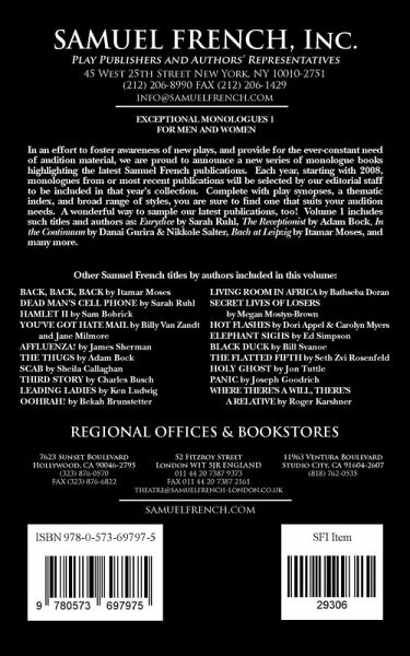 In an effort to foster awareness of new plays, and provide for the ever-constant need of audition material, we are proud to announce a new series of monologue books highlighting the latest Samuel French publications. Each year, starting with 2008, monologues from or most recent publications will be selected by our editorial staff to be included in that year's collection. Complete with play synopses, a thematic index, and broad range of styles, you are sure to find one that suits your audition ne