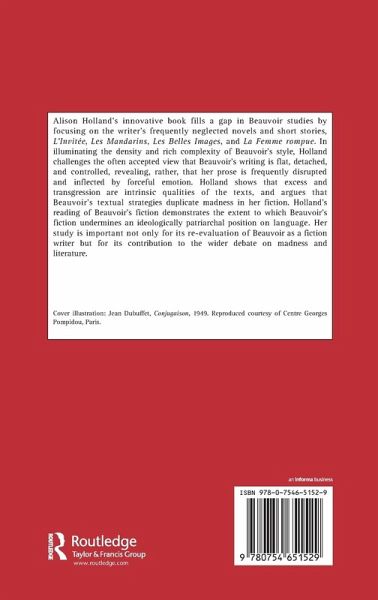 Alison Holland's study focuses on the writer's frequently neglected novels and short stories, including L'Invitée, Les Mandarins, Les Belles Images, and La Femme rompue. Illuminating the density and rich complexity of Beauvoir's style, Holland demonstrates the extent to which Beauvoir's fiction undermines an ideologically patriarchal position on language. Her re-evaluation of Beauvoir as a fiction writer makes an important contribution to the wider debate on madness and literature.