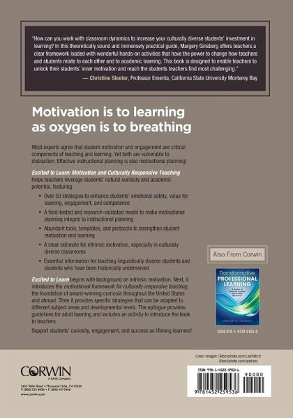 Organized around Ginsberg and Wlodkowski's highly-acclaimed Motivational Framework for Culturally-Responsive Teaching, an extensively field-tested and research-validated pedagogical model that helps teachers plan and reflect on lessons in ways that work together to enhance student motivation and learning.
