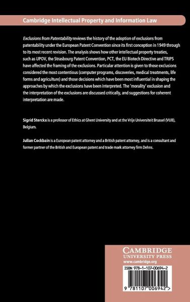 Exclusions from Patentability reviews the history of the adoption of exclusions from patentability under the European Patent Convention since its first conception in 1949 through to its most recent revision. The analysis shows how other intellectual property treaties, such as UPOV, the Strasbourg Patent Convention, PCT, the EU Biotech Directive and TRIPS have affected the framing of the exclusions. Particular attention is given to those exclusions considered the most contentious (computer programmes, discoveries, medical treatments, life forms and agriculture) and those decisions which have been most influential in shaping the approaches by which the exclusions have been interpreted. The 'morality' exclusion and the interpretation of the exclusions are discussed critically and suggestions for coherent interpretation are made.