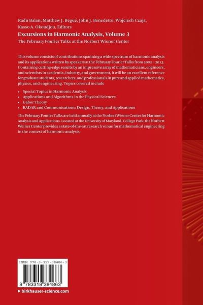 This volume consists of contributions spanning a wide spectrum of harmonic analysis and its applications written by speakers at the February Fourier Talks from 2002 - 2013. Containing cutting-edge results by an impressive array of mathematicians, engineers, and scientists in academia, industry, and government, it will be an excellent reference for graduate students, researchers, and professionals in pure and applied mathematics, physics, and engineering. Topics covered include