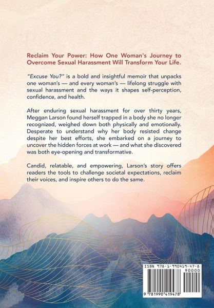 For over thirty years, Meggan Larson endured the relentless weight of sexual harassment-an invisible force that shaped her self-worth, confidence, and even her physical health. Trapped in a body she no longer recognized and exhausted from trying to fix what felt broken, she set out to uncover the deeper reasons behind her struggles. What she discovered changed everything. Excuse You? is more than just one woman's story-it's every woman's story. With raw honesty and unflinching insight, Larson unpacks the silent, suffocating toll that harassment takes on the mind and body, revealing the hidden ways it impacts our lives. But this isn't just a memoir of hardship; it's a testament to resilience, a call to reclaim power, and a guide to breaking free from the narratives that have kept women small for far too long. Through her journey, Larson offers a roadmap for anyone ready to shed the weight-both literal and emotional-of past experiences, challenge societal expectations, and step boldly into their own strength. Excuse You? is a rallying cry for those who have been silenced, a beacon of hope for those seeking healing, and a powerful reminder that no one has to walk this path alone. It's time to reclaim your voice, your body, and your power.
