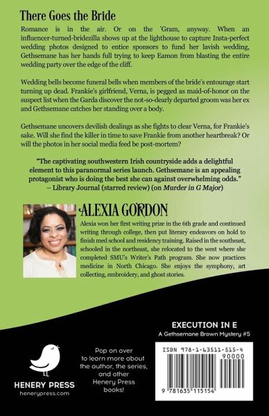 Romance is in the air. Or on the ’Gram, anyway. When an influencer-turned-bridezilla shows up at the lighthouse to capture Insta-perfect wedding photos designed to entice sponsors to fund her lavish wedding, Gethsemane has her hands full trying to keep Eamon from blasting the entire wedding party over the edge of the cliff. Wedding bells become funeral bells when members of the bride’s entourage start turning up dead. Frankie’s girlfriend, Verna, is pegged as maid-of-honor on the suspect list when the Garda discover the not-so-dearly departed groom was her ex and Gethsemane catches her standing over a body. Gethsemane uncovers devilish dealings as she fights to clear Verna, for Frankie’s sake. Will she find the killer in time to save Frankie from another heartbreak? Or will the photos in her social media feed be post-mortem? - - - - - - - - - - - - - EXECUTION IN E by Alexia Gordon A Henery Press Mystery. If you like one, you’ll probably like them all.