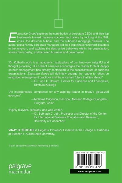 "Dr. Kothari s work is an academic masterpiece of our time- very insightfuland thought provoking-. His brilliant narrative encourages the reader to think deeply on how management has directly contributed to the success/failure of business organizations. Executive Greed will definitely engage the reader to reflection on misguided management practices & the uncertain future that lies ahead." - Dr. Juan C. Barrera, Center for Business & Economics, Elmhurst College