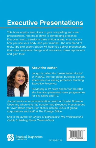 *SHORT-LISTED FOR THE BUSINESS BOOK AWARDS 2019!* This book equips executives to give compelling and clear presentations. And it's all down to presence. There are three critical areas - what you say, how you use your body and your mindset. The rich blend of tools, tips and expert advice will help you become a consistently outstanding communicator.