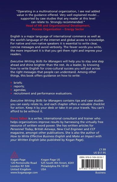 Executive Writing Skills for Managers deals with the English business writing you need at the top of your career. It focuses on writing English as a key business tool in international business which may have to be tailored for a multicultural readership. The invaluable guidance includes how to harmonize the English you and your teams use (for example, for performance evaluation, sales pitch etc) and introduces the notion of Word Power Skills 2.0 for unified writing that keeps everyone in the loop.