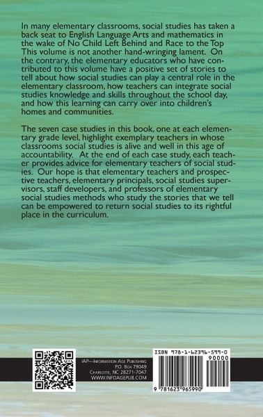 A volume in Research in Curriculum and Instruction Series Editor: O. L. Davis, Jr. The University of Texas at Austin In many elementary classrooms, social studies has taken a back seat to English Language Arts and Mathematics in the wake of No Child Left Behind and Race to the Top This volume is not another hand-wringing lament. On the contrary, the elementary educators who have contributed to this volume have a positive set of stories to tell about how social studies can play a central role in the elementary classroom, how teachers can integrate social studies knowledge and skills throughout the school day, and how this learning can carry over into children's homes and communities. The seven case studies in this book, one at each elementary grade level, highlight exemplary teachers in whose classrooms social studies is alive and well in this age of accountability. At the end of each case study, each teacher provides advice for elementary teachers of social studies. Our hope is that elementary teachers and prospective teachers, elementary principals, social studies supervisors, staff developers, and professors of elementary social studies methods who study the stories that we tell can be empowered to return social studies to its rightful place in the curriculum.