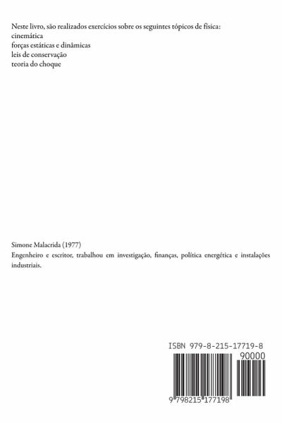 Neste livro, são realizados exercícios sobre os seguintes tópicos de física: cinemática forças estáticas e dinâmicas leis de conservação teoria do choque