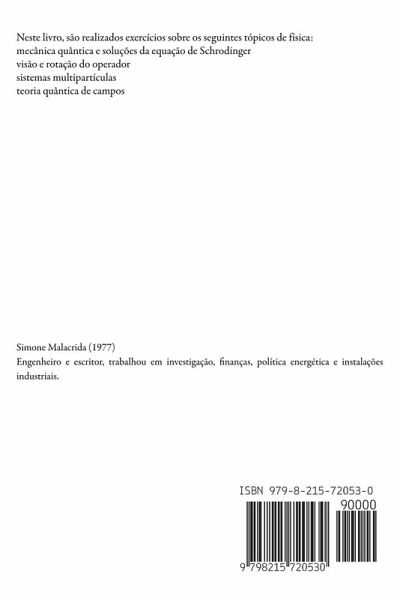 Neste livro, são realizados exercícios sobre os seguintes tópicos de física: mecânica quântica e soluções da equação de Schrodinger visão e rotação do operador sistemas multipartículas teoria quântica de campos