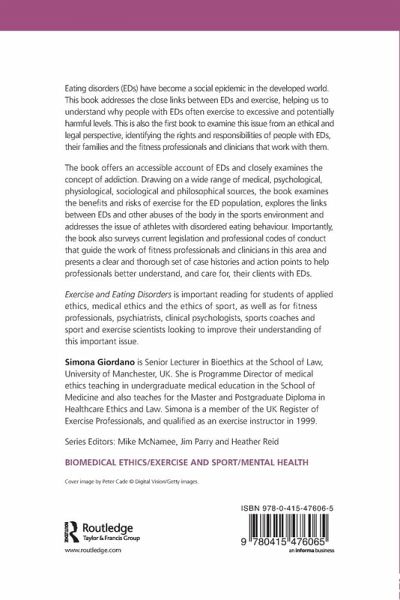 This book addresses the close links between EDs and exercise, helping us to understand why people with ED typically exercise to excessive, often harmful, levels. This is also the first book to examine this issue from an ethical and legal perspective, identifying the rights and responsibilities of people with EDs, their families, and the fitness professionals and clinicians that work with them.