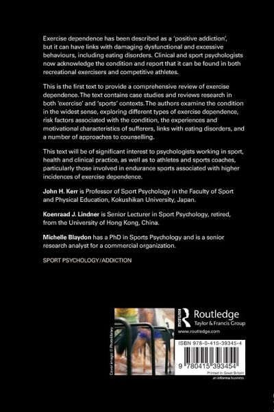 Exercise dependence or addiction has been described as a 'positive addiction', but it can have links with damaging dysfunctional and excessive behaviours, including eating disorders. Clinical and sport psychologists now acknowledge the condition and report that it can be found in recreational exercisers and competitive athletes. This is the first text to provide a comprehensive guide to exercise dependence. The text contains case studies and reviews research into exercise dependence in both 'exercise' and 'sports' contexts. The authors examine the condition in the widest sense, exploring different types of exercise dependence, risk factors associated with the condition, the experiences and motivational characteristics of sufferers, links with eating disorders, and a number of approaches to counselling. This text will be of significant interest to psychologists working in sport, health and clinical practice, as well as to athletes and sports coaches, particularly those involved in endurance sports associated with higher incidences of exercise dependence.