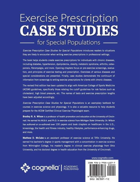 Exercise Prescription Case Studies for Special Populations introduces readers to situations they are likely to encounter when writing exercise prescriptions in professional settings. The book helps students create exercise prescriptions for individuals with chronic diseases, including diabetes, hypertension, dyslipidemia, obesity, metabolic syndrome, arthritis, osteoporosis, fibromyalgia, and more. Opening chapters focus on pre-exercise screenings, evaluation, and principles of exercise testing and prescription. Overviews of various diseases and special considerations are presented. Finally, case studies demonstrate the continuum of information from screenings to writing exercise prescriptions for clients with chronic diseases. The revised first edition has been updated to align with American College of Sports Medicine (ACSM) guidelines, specifically those relating the cutoff guidelines for risk factors such as cholesterol, high blood pressure, etc. The names of tests and exercise prescription lengths have been adjusted accordingly. Exercise Prescription Case Studies for Special Populations is an exemplary textbook for courses in exercise science and physiology. It is also a valuable resource to help students prepare for the ACSM Certified Clinical Exercise Physiologist exam.