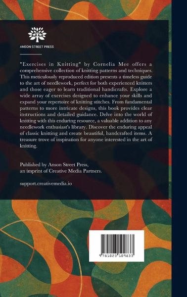 "Exercises in Knitting" by Cornelia Mee offers a comprehensive collection of knitting patterns and techniques. This meticulously reproduced edition presents a timeless guide to the art of needlework, perfect for both experienced knitters and those eager to learn traditional handicrafts. Explore a wide array of exercises designed to enhance your skills and expand your repertoire of knitting stitches. From fundamental patterns to more intricate designs, this book provides clear instructions and detailed guidance. Delve into the world of knitting with this enduring resource, a valuable addition to any needlework enthusiast's library. Discover the enduring appeal of classic knitting and create beautiful, handcrafted items. A treasure trove of inspiration for anyone interested in the art of knitting. This work has been selected by scholars as being culturally important, and is part of the knowledge base of civilization as we know it. This work is in the public domain in the United States of America, and possibly other nations. Within the United States, you may freely copy and distribute this work, as no entity (individual or corporate) has a copyright on the body of the work. Scholars believe, and we concur, that this work is important enough to be preserved, reproduced, and made generally available to the public. We appreciate your support of the preservation process, and thank you for being an important part of keeping this knowledge alive and relevant.