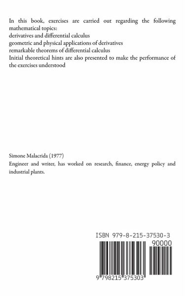 In this book, exercises are carried out regarding the following mathematical topics: derivatives and differential calculus geometric and physical applications of derivatives remarkable theorems of differential calculus Initial theoretical hints are also presented to make the performance of the exercises understood