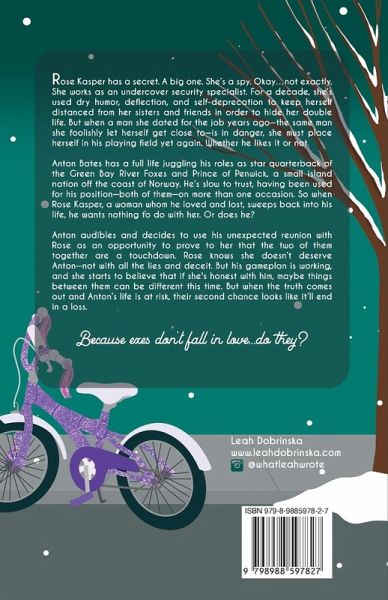 A fast-paced and fun sports and spy romantic comedy...let the games begin! Rose Kasper has a secret. A big one. She's a spy. Okay...not exactly. She works as an undercover security specialist. For a decade, she's used dry humor, deflection, and self-deprecation to keep herself distanced from her sisters and friends in order to hide her double life. But when a man she dated for the job years ago-the same man she foolishly let herself get close to-is in danger, she must place herself in his playing field yet again. Whether he likes it or not. Anton Bates has a full life juggling his roles as star quarterback of the Green Bay River Foxes and Prince of Penwick, a small island nation off the coast of Norway. He's slow to trust, having been used for his position-both of them-on more than one occasion. So when Rose Kasper, a woman whom he loved and lost, sweeps back into his life, he wants nothing to do with her. Or does he? Anton audibles and decides to use his unexpected reunion with Rose as an opportunity to prove to her that the two of them together are a touchdown. Rose knows she doesn't deserve Anton-not with all the lies and deceit. But his gameplan is working, and she starts to believe that if she's honest with him, maybe things between them can be different this time. But when the truth comes out and Anton's life is at risk, their second chance looks like it'll end in a loss. Because exes don't fall in love...do they? (Exes Don't is the third book in the Fall In Love series, which follows three sisters as they find love after moving across the country to the small town of Cashmere Cove, Wisconsin. This is a closed door romcom with plenty of sizzling chemistry and romantic tension, but no spice. Exes Don't is a standalone book, but it's best enjoyed after reading Friends Don't and Enemies Don't.)