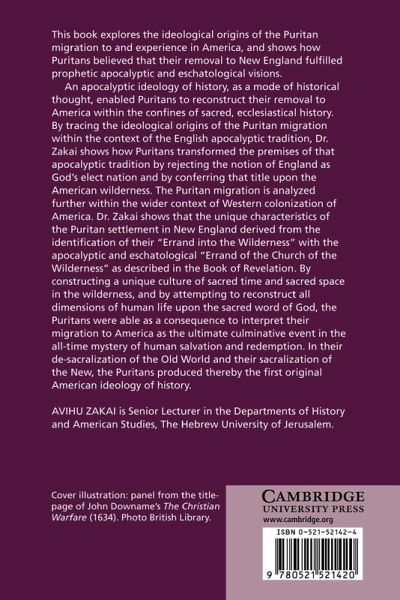 This book explores the ideological origins of the Puritan migration to and experience in America, and shows how Puritans believed that their removal to New England fulfilled prophetic apocalyptic and eschatological visions. An apocalyptic ideology of history, as a mode of historical thought, enabled Puritans to reconstruct their removal to America within the confines of sacred, ecclesiastical history. By tracing the ideological origins of the Puritan migration within the context of the English apocalyptic tradition, Dr Zakai shows how Puritans transformed the premises of that tradition by rejecting the notion of England as God's elect nation and by conferring that title upon the American wilderness. The Puritan migration is analyzed further within the wider context of Western colonization of America. Dr Zakai shows that the unique characteristics of the Puritan settlement in New England derived from identification with the 'Errand of the Church of the Wilderness' as described in the Book of Revelation.