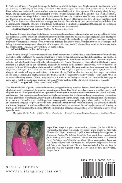 Exiles and Pleasures: Taunggyi Dreamer, reflecting themes of trauma, memory, psychic fragmentation and survival, echoes the poet's own multiple migrations as a member of the Sikh diaspora-from the mountains of the Shan States in Taunggyi, Burma, to the subtropical and semi-arid capital of India, New Delhi, to the hot deserts of Baghdad, Iraq, and eventually to the cold shores of Lake Superior in the Upper Peninsula of Michigan in the United States of America. The poetry, inspired by Singh's exile from her birth country, Burma, after the military coup of 1962, to her resettlement as a stateless citizen in her ancestral home in India during her teen years and eventually, her arrival in her thirties to the U.S. as a resident alien, is fueled and driven by ancestral female voices-grandmothers and mother-and especially by the poet's own hybrid ethos through woman-centric poetics. It is the community of women, in domestic and public spaces of the home and the world, in India/Burma and in the Indian diaspora, particularly the Sikh, that defines Singh's singularly creative style. She, too, like many diasporic writers, uses hybridity to create an aesthetic that, although not unique in terms of postcolonialism, is particularly hers in that, as a tricultural transplant, her writing vividly reveals the pluralistic ethos of an exile and a diasporic. Like George Lamming, Singh highlights not only about the trauma of dislocation, but also about the "pleasures of exile" through her splintered poetics.