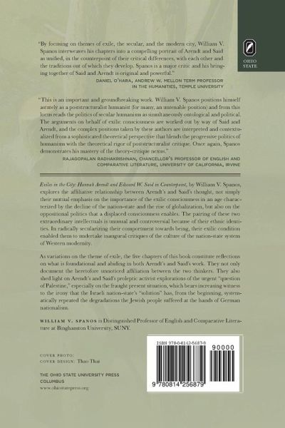Exiles in the City: Hannah Arendt and Edward W. Said in Counterpoint, by William V. Spanos, explores the affiliative relationship between Arendt's and Said's thought, not simply their mutual emphasis on the importance of the exilic consciousness in an age characterized by the decline of the nation-state and the rise of globalization, but also on the oppositional politics that a displaced consciousness enables. The pairing of these two extraordinary intellectuals is unusual and controversial because of their ethnic identities. In radically secularizing their comportment towards being, their exilic condition enabled them to undertake inaugural critiques of the culture of the nation-state system of Western modernity. As variations on the theme of exile, the five chapters of this book constitute reflections on what is foundational and abiding in both Arendt's and Said's work. They not only document the heretofore unnoticed affiliation between the two thinkers. They also shed light on Arendt's and Said's proleptic activist explorations of the urgent "question of Palestine," especially on the fraught present situation, which bears increasing witness to the irony that the Israeli nation-state's "solution" has, from the beginning, systematically repeated the degradations the Jewish people suffered at the hands of German nationalism.