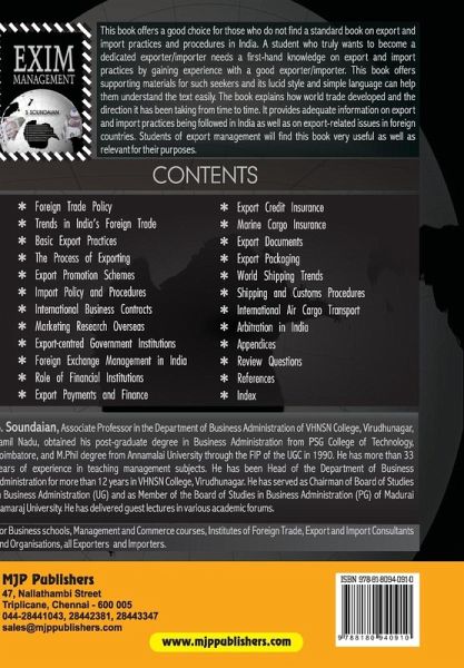 This book offers a good choice for those who do not find a standard book on export and import practices and procedures in india. A student who truly wants to become a dedicated exporter/importer needs a first hand knowledge on export and import practices by gaining experience with a good exporter/importer. This book offers supporting materials for such seekers and its lucid style and simple language can help them understand the text easily. The book explains how world trade developed and the direction it has been taking from time to time. It provides adequate information on export and import practices being followed in india as well as on export-related issues in foreign countries. Students of export management will fine this book very useful as well relevant for their purposes.