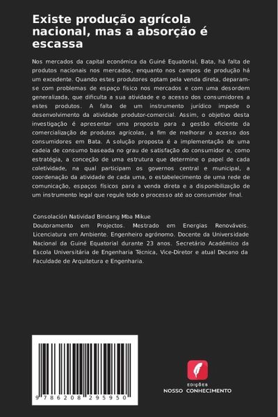 Nos mercados da capital económica da Guiné Equatorial, Bata, há falta de produtos nacionais nos mercados, enquanto nos campos de produção há um excedente. Quando estes produtores optam pela venda direta, deparam-se com problemas de espaço físico nos mercados e com uma desordem generalizada, que dificulta a sua atividade e o acesso dos consumidores a estes produtos. A falta de um instrumento jurídico impede o desenvolvimento da atividade produtor-comercial. Assim, o objetivo desta investigação é apresentar uma proposta para a gestão eficiente da comercialização de produtos agrícolas, a fim de melhorar o acesso dos consumidores em Bata. A solução proposta é a implementação de uma cadeia de consumo baseada no grau de satisfação do consumidor e, como estratégia, a conceção de uma estrutura que determine o papel de cada coletividade, na qual participam os governos central e municipal, a coordenação da atividade de cada uma, o estabelecimento de uma rede de comunicação, espaços físicos para a venda direta e a disponibilização de um instrumento legal que regule todo o processo até ao consumidor final.