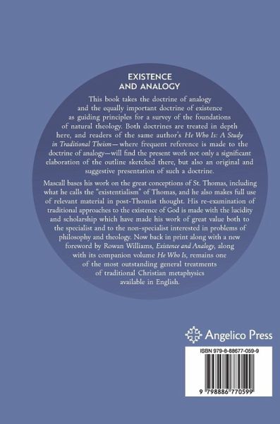 This book takes the doctrine of analogy and the equally important doctrine of existence as guiding principles for a survey of the foundations of natural theology. Both doctrines are treated in depth here, and readers of the same author's He Who Is: A Study in Traditional Theism - where frequent reference is made to the doctrine of analogy - will find the present work not only a significant elaboration of the outline sketched there, but also an original and suggestive presentation of such a doctrine. Mascall bases his work on the great conceptions of St. Thomas, including what he calls the "existentialism" of Thomas, and he also makes full use of relevant material in post-Thomist thought. His re-examination of traditional approaches to the existence of God is made with the lucidity and scholarship which have made his work of great value both to the specialist and to the non-specialist interested in problems of philosophy and theology. Now back in print along with a new foreword by Rowan Williams, Existence and Analogy, along with its companion volume He Who Is, remains one of the most outstanding general treatments of traditional Christian metaphysics available in English.