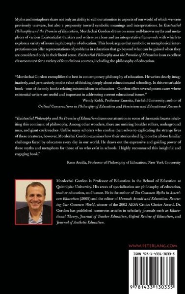 «Mordechai Gordon exemplifies the best in contemporary philosophy of education. He writes clearly, imaginatively, and persuasively on the value of thinking deeply about education and schooling. In this remarkable book - one of the only books relating existentialism to education - Gordon offers several potent cases where existential writers are useful and important in addressing current educational issues. Philosophers of Education are only one of several audiences for this impressive collection of essays. Practicing teachers and educational policy makers, as well as any other serious person committed to quality education, would benefit from Gordon's scholarship. He sheds a fresh and more probing light on such problems as: the working conditions of teachers, the standardization of curriculum and assessment, the limits and possibilities of technology, the effects of negative educational authority on the teaching-learning relationship, and the need to envision schools as democratic spaces/places from which to build a common world.»