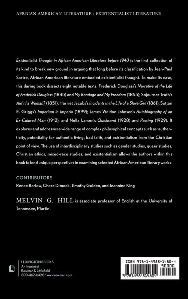 Acknowledgments Introduction: The Legacy of Existentialism in African American Literature Before 1940 Melvin Hill Chapter 1: Morality, Art, and the Self: Existentialism in Frederick Douglass and Søren Kierkegaard Timothy Golden Chapter 2: I'm Not Here: Existential Acts in 19th Century African American Women's Narrative Jeannine King Chapter 3: Sutton E. Griggs's Existential Vision in Imperium in Imperio: The New Negro Melvin G. Hill Chapter 4: Existential Authenticity in Early 20th Century African-American Passing Narratives Renee Barlow Chapter 5: "Clare Kendry Cared Nothing For the Race. She Only Belonged to It": The Intersectional Bad Faith of Race and Gender in Nella Larsen's Passing Chase Dimock About the Contributors