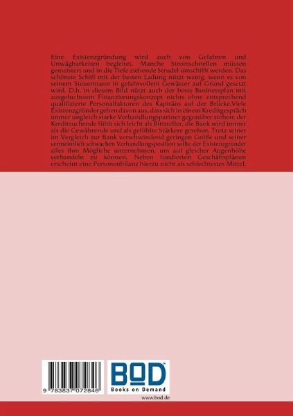 Eine Existenzgründung wird auch von Gefahren und Unwägbarkeiten begleitet. Existenzgründungen sind kei9n Sprint, sondern ein Marathon, bei dem manche Stromschnellen gemeistert und in die Tiefe ziehenden Strudel umschifft werden müssen. Das schonste Schiff mit der besten Ladung nützt wenig, wenn es von seinem Steuermann in gefahrvollem Gewässer auf Grund gesetzt wird. Um in diesem Bild zu bleiben: auch der beste Businessplan mit ausgefuchstem Finanzierungskonzept nützt nichts ohne entsprechend qualifizierte Personalfaktoren des Kapitäns auf der Brücke. Existenzgründer gehen nicht selten davon aus, dass sich in einem Kreditgespräch immer ungleich starke Verhandlungspartner gegenüber stehen: der Kreditsuchende fühlt sich leicht als Bittsteller, die Bank wird immer als die Gewährende und als gefühlte Stärkere gesehen. Trotz seiner im Vergleich zur Bank verschwindend geringen Größe und seiner vermeintlich schwachen Verhandlungsposition sollte der Existenzgründer alles ihm Mögliche unternehmen, um auf gleicher Augenhöhe zu verhandeln. Neben fundierten Geschäftsplänen erscheint eine Personalbilanz hierzu nicht als schlechtestes Mittel.Das Selbstbewusstsein ein gleichwertiger (nicht unbedingt gleichgewichtiger) Geprächspartner zu sein, könnt auch aus dem Wissen um die eigenen Stärken auf Grundlage eines sorgfältig vorbereiteten Ratings der persönlichen Existenzgründerfaktoren gespeist werden.