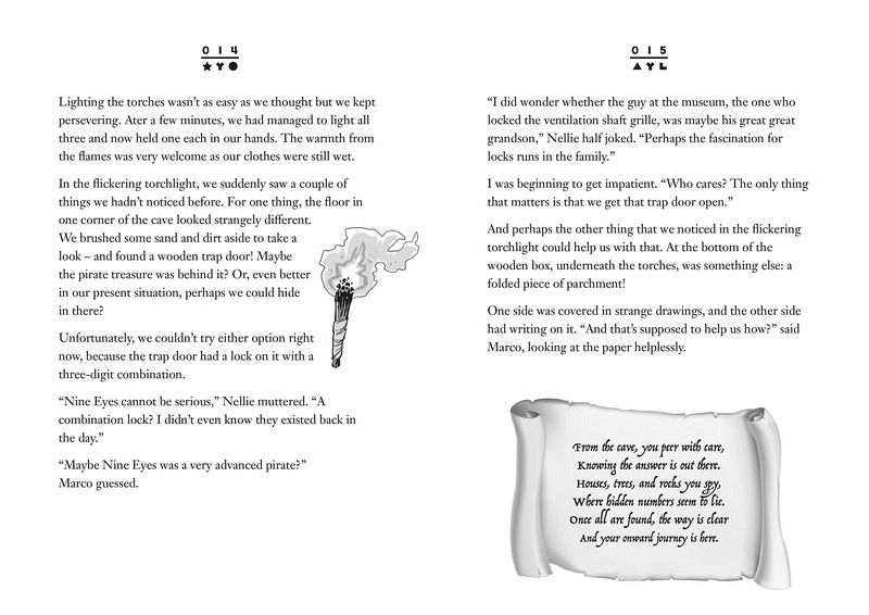 Solve 10 puzzles to unlock the secret of a dreaded pirate! One evening at summer camp, mysterious clues lead Jacob, Nellie, and Marco to a pirate museum and into the clutches of a gang of thieves! Will the three kids learn to cooperate to escape the criminals? And can they uncover the secret of Captain Nine Eyes, the infamous pirate with a love of riddles? In this puzzle-filled adventure, our three heroes are depending on you to help them make it to the end! A mystery story and interactive reading experience to accompany the award-winning EXIT: The Game series. Please note—this book can only be solved once. Get ready to fold, cut, and write on the pages to solve the riddles!