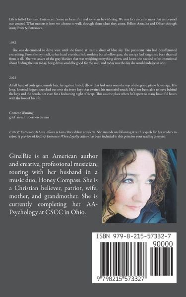Life is full of Exits and Entrances... Some are beautiful, and some are bewildering. We may face circumstances that are beyond our control. What matters is how we choose to walk through them when they come. Follow Annalise and Oliver through many Exits & Entrances. 1982 She was determined to drive west until she found at least a sliver of blue sky. The persistent rain had decaffeinated everything. From the sky itself, to her hazel eyes that held nothing but a hollow gaze, the energy had long since been drained from it all. She was aware of the gray blanket that was weighing everything down, and knew she needed to be intentional about finding the sun today. Long drives could be good for the soul, and today was the day she would indulge in one. 2022 A full head of curly gray, unruly hair, lay against his left elbow that had sunk onto the top of the grand piano hours ago. His long, knotted fingers stretched out over the ivory keys that awaited his masterful touch. He'd not been able to leave behind the keys and the bench, not even for a beckoning night of sleep. This was the place where he'd spent so many beautiful hours with the love of his life. Content Warning: grief assualt abortion trauma