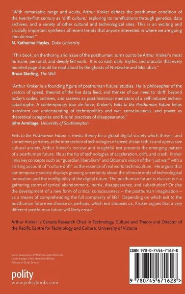 Exits to the Posthuman Future is media theory for a global digital society which thrives, and sometimes perishes, at the intersection of technologies of speed, distant ethics and a pervasive cultural anxiety. Arthur Kroker's incisive and insightful text presents the emerging pattern of a posthuman future: life at the tip of technologies of acceleration, drift and crash. Kroker links key concepts such as "Guardian Liberalism" and Obama's vision of the "Just War" with a striking account of "culture drift" as the essence of real world technoculture. He argues that contemporary society displays growing uncertainty about the ultimate ends of technological innovation and the intelligibility of the digital future. The posthuman future is elusive: is it a gathering storm of cynical abandonment, inertia, disappearance and substitution? Or else the development of a new form of critical consciousness - the posthuman imagination - as a means of comprehending the full complexity of life? Depending on which exit to the posthuman future we choose or, perhaps, which exit chooses us, Kroker argues that a very different posthuman future will likely ensue.