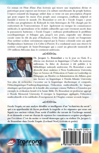 Ce roman est l'etat d'ame d'un ecrivain qui trouve une inspiration divine et patriotique pour exposer aux lecteurs a la culture enrichissante du peuple haitien. L'aspect semantif du language utilise dans ce texte est une prescription d'espoir qui peut soigner les plaies d'un peuple aussi courageux, souffrant, meprise, et humilie a travers le monde, mais aussi qui enseigne aux descendants haitiens et etrangers les faits historiques caches, le savoir et les realites culturelles des paysans haitiens." Exode Exquis" embrasse profondement le probleme sociolinguistique et bilingue qui, jusqu'à nos jours, a cause une distance sociale entre les fils du pays d'Anacaona. Cette distance sociale est l'empreinte d'un système scolaire envenimeux impose par la France coloniale seize ans apres l'independance haitienne a la Crete-a-Pierrot. Il a condamne aussi sans reserve le système esclavagiste de Saint-Domingue qui a cause un genocide immonde de 150 millions Africains dans le continent americain.