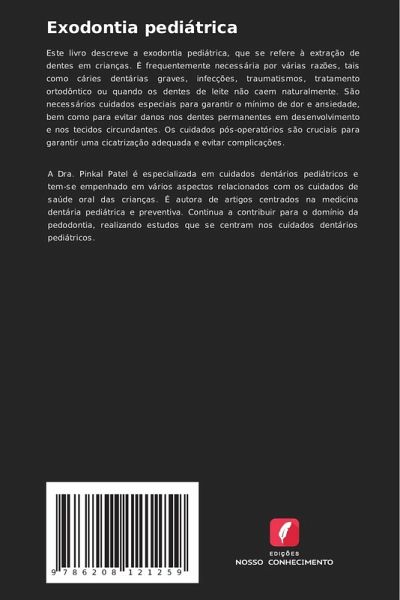 Este livro descreve a exodontia pediátrica, que se refere à extração de dentes em crianças. É frequentemente necessária por várias razões, tais como cáries dentárias graves, infecções, traumatismos, tratamento ortodôntico ou quando os dentes de leite não caem naturalmente. São necessários cuidados especiais para garantir o mínimo de dor e ansiedade, bem como para evitar danos nos dentes permanentes em desenvolvimento e nos tecidos circundantes. Os cuidados pós-operatórios são cruciais para garantir uma cicatrização adequada e evitar complicações.